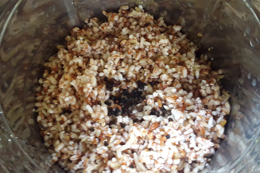 4. Take soaked rice in a mixer jar. Add cardamom seeds.