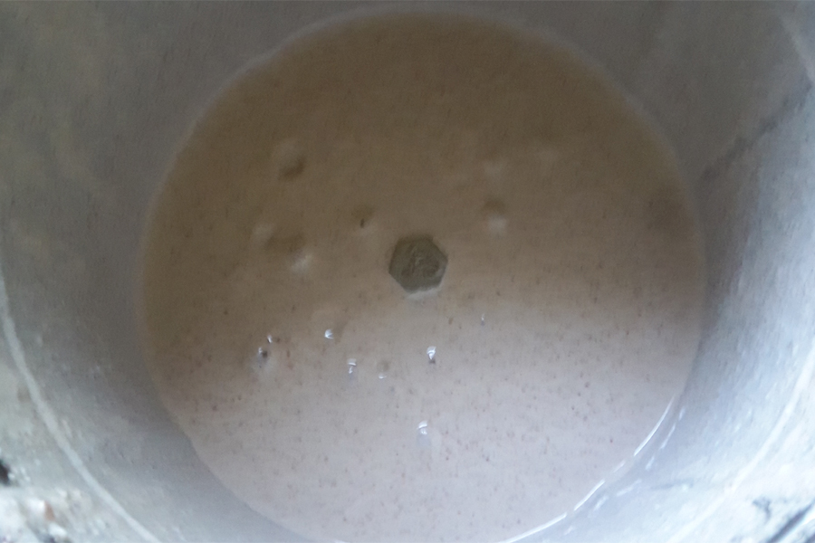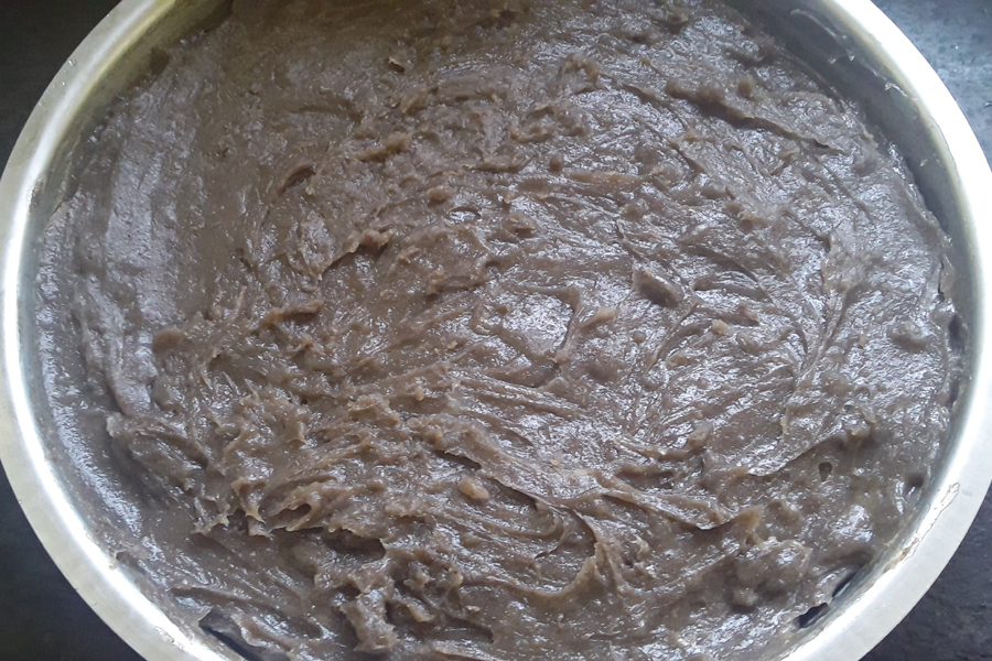 5. Add ½ cup sugarcane juice or as required and grind rice to a smooth batter.
