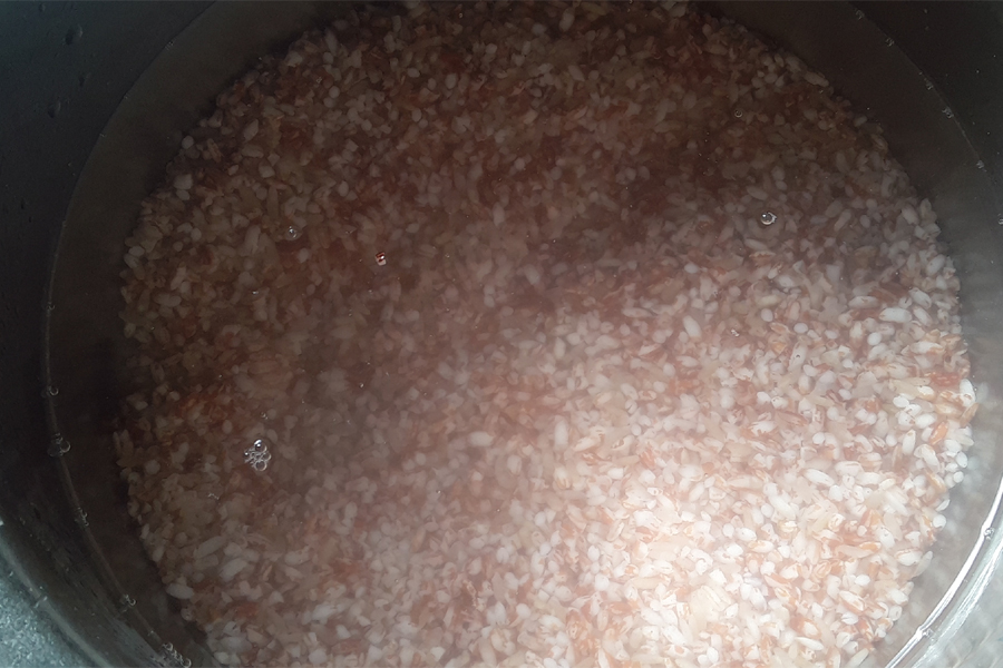 2. Once cooled, rinse rice until clean and soak for 2 hours.