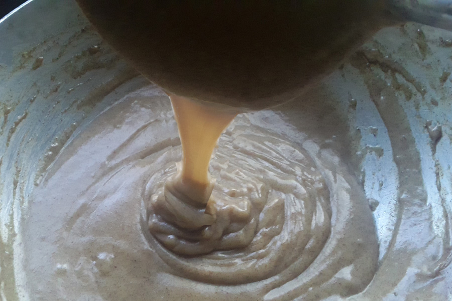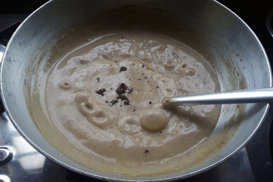 12. Now switch off the heat at this consistency. This takes about 15 to 20 minutes depending on the type and thickness of the pan and the flame intensity.