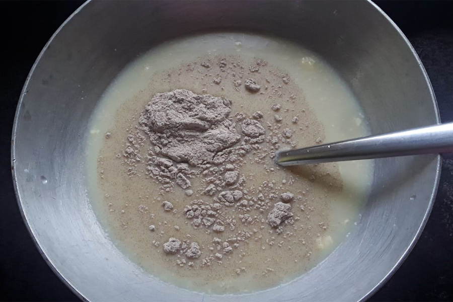 Either raagi flour or ground whole raagi batter is used to make Raagi Manni. Raagi flour is used in this recipe to make Manni. Milk can be either whole milk or boiled milk but should be at room temperature.