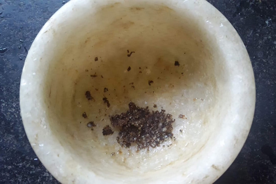 1. Take 2 cardamoms, take out the seeds, and rinse them. Crush the seeds to powder using mortar and pestle and keep that handy.