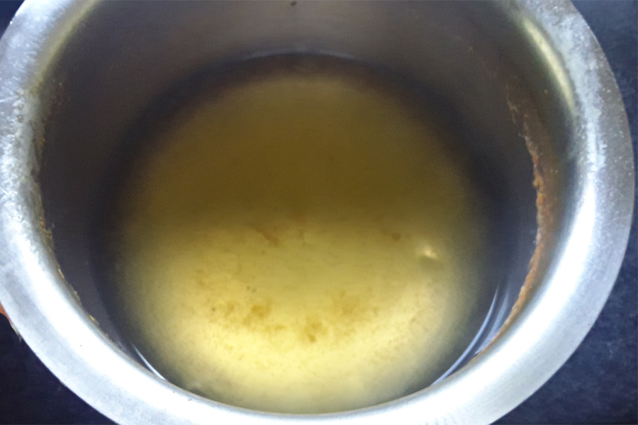 17. Switch off the heat when the paayasa is properly heated and starts boiling. Do not boil too much.